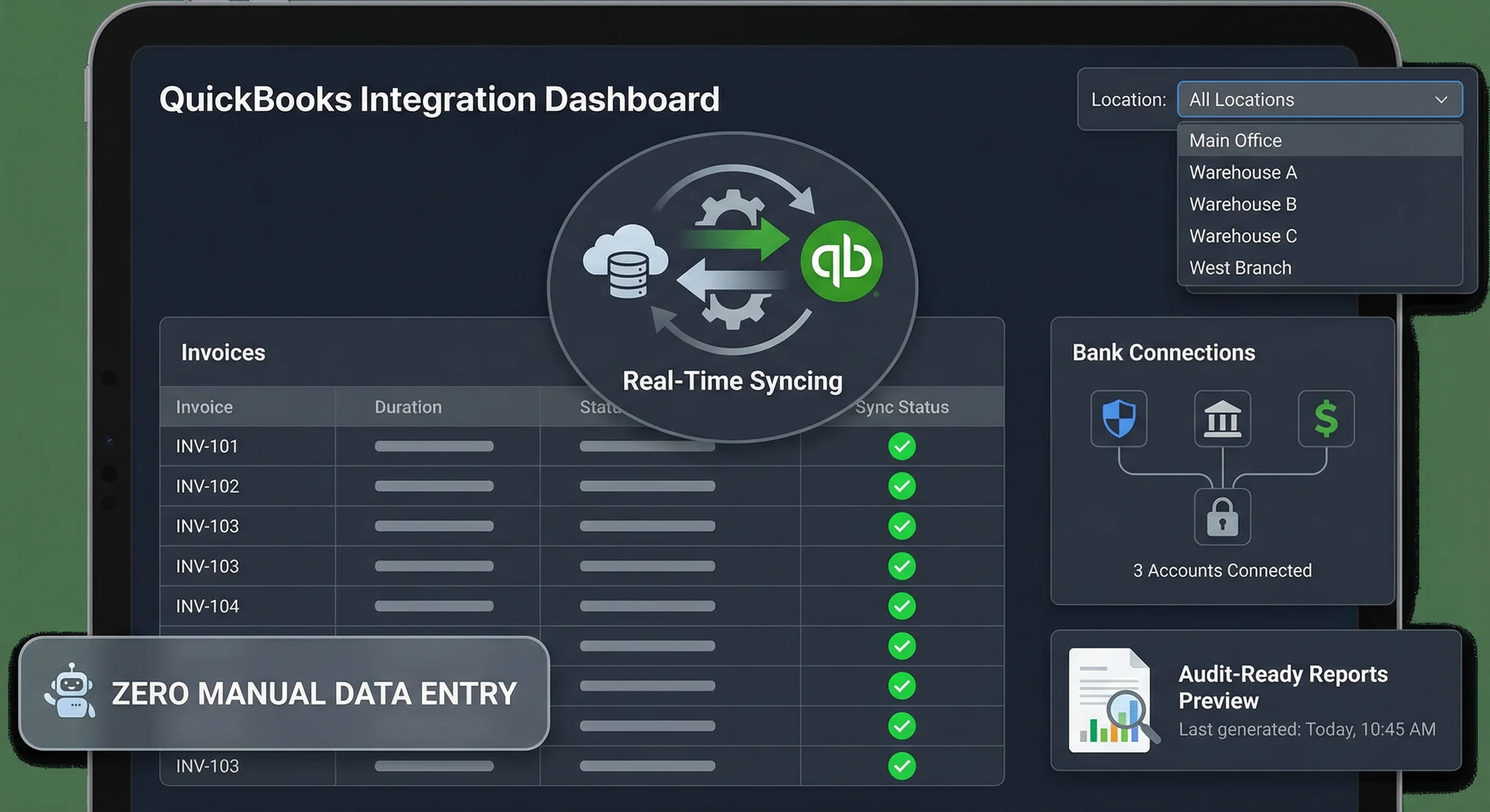Your accounting, automated. Sync invoices, payments, refunds, credit memos, and expenses directly to QuickBooks in real-time. Support for multiple locations and bank accounts means your books stay organized, accurate, and audit-ready—with zero manual data entry.
