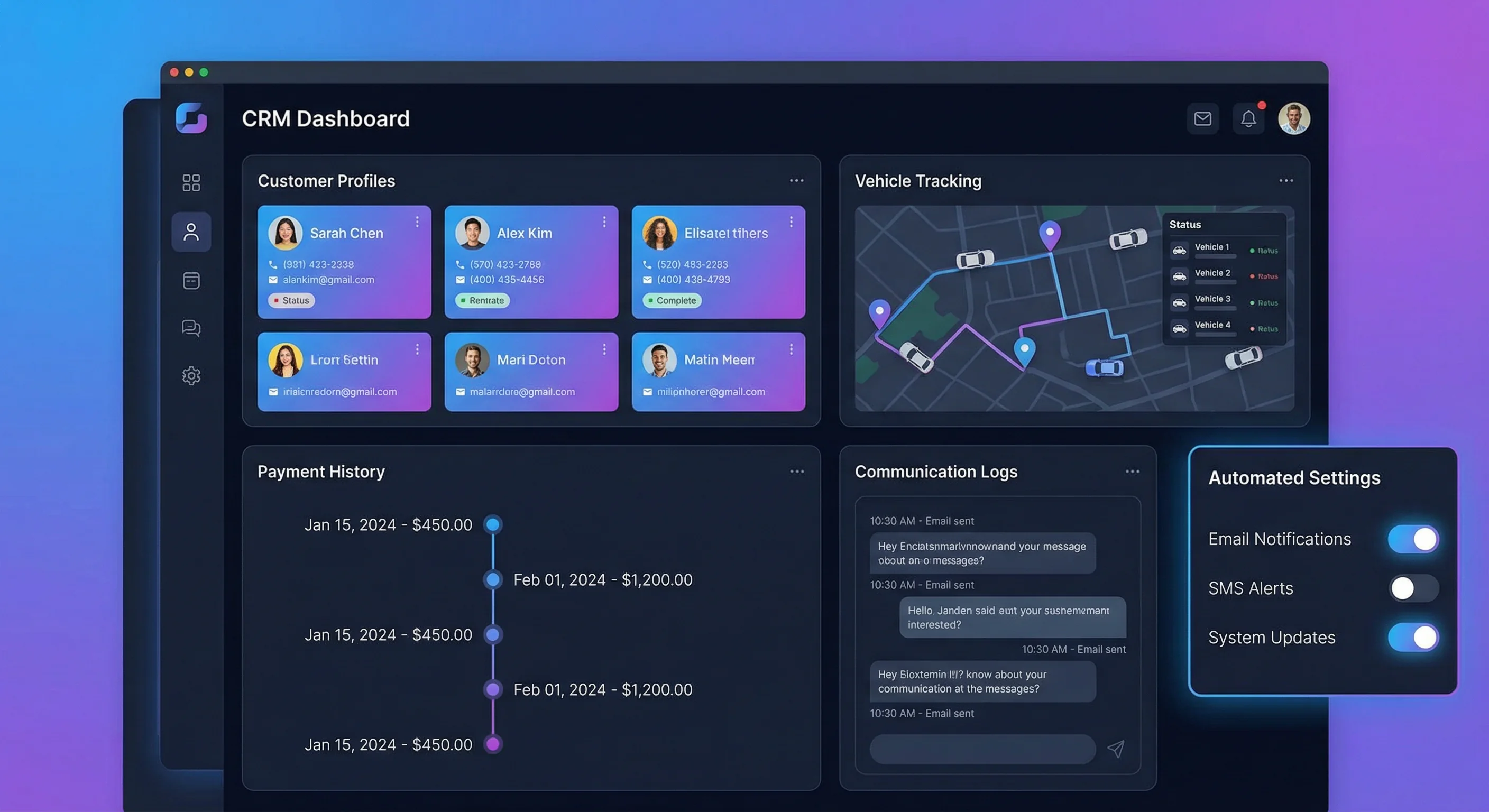 Complete CRM with customer profiles, payment history, vehicle tracking, communication logs, and automated notifications. Build lasting relationships with your customers.